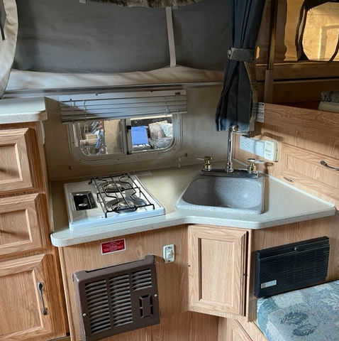 2005 Palomina Bronco Camper RV is now available in stock at an amazing price. The RV is 11 feet in length and equipped with all appliances, fridge and freezer, furnace, water heater. Fits any short or long box truck.
