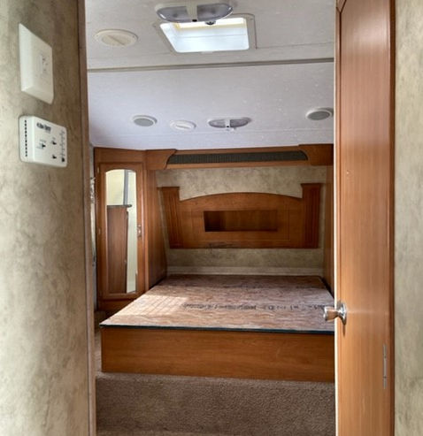 This beautiful unit comes with a queen size walk around bed up front with wardrobes on both side, storage underneath, a walk-in shower, sink with vanity and a private bathroom. The center of the fifth wheel comes with a dinette table and a couch sitting on a large slide out. Across from that is the kitchen with double bowl sink, oven, 3 stove top burners with overhead fan, microwave and a refrigerator. The kitchen also comes with plenty of cupboard space for all the kitchen necessities and wants. The back of the fifth wheel is equipped with a double door closet, a small room with one bunk bed sitting on the slide out and across that sits a large closet with mirror. This unit is equipped with all appliances and is ready to hit the road.