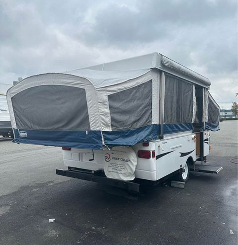 Experience the great outdoors in comfort with the 2010 Coleman Tent Trailer. This well-maintained trailer offers essential amenities like a fridge, furnace, water heater, and double beds, ensuring a cozy home away from home. It comes with an awning and front storage for added convenience, and its new tires provide worry-free travel. Every component is in perfect working order, ensuring there are no leaks, damages, or unsightly stains to contend with. Your adventure awaits – it's time to hit the road in style with this immaculate and fully-equipped Coleman Tent Trailer.