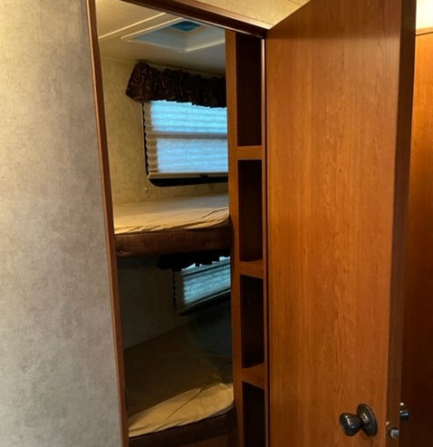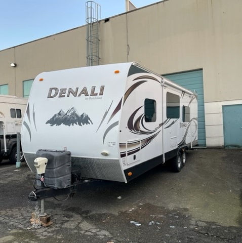 The incredible 2012 Dutchmen Denali is equipped with all that a family desires and needs when it comes to camping. This beauty comes with a queen size walk around bed up front, bunk beds in the back, convertible U-shaped dinette and a convertible couch for a maximum sleeping capacity of up to 8 people. The kitchen is equipped with a double bowl sink, 3 stove top burners with over head fan, oven, microwave, refrigerator and plenty of cupboard space. This unit is equipped with all appliances such as water heater, ducted AC, furnace and a 125W solar panel with a 2,000W invertor.