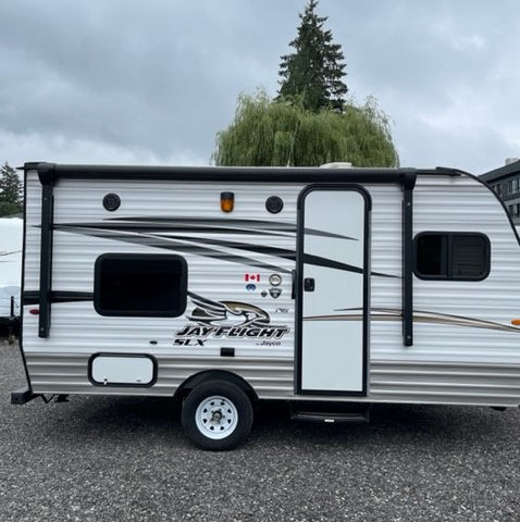 The incredibly light weight, clean and well maintained Jayco SLX 154BH with 2 bunk beds and a full bathroom in the back. The center of this trailer is equipped with a kitchen equipped with pantry, refrigerator, 2 stove top burners, single bowl sink, microwave and overhead compartments. At the front of the trailer is a convertible dinette which turns into a bed. This unit is equipped with appliances such as A/C, furnace, water heater and a 10-foot awning.