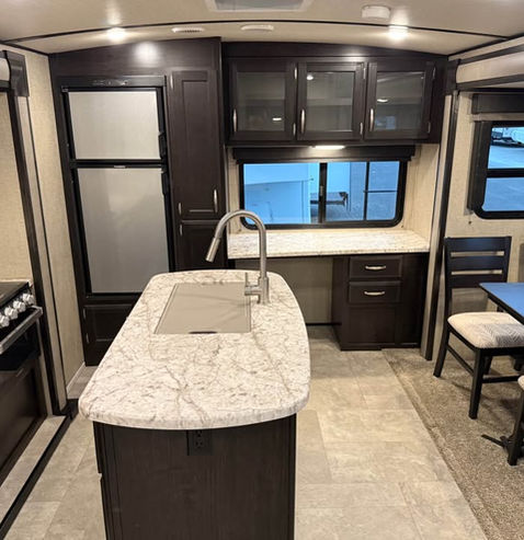 2019 Grand Design Imagine 2670MK with Arctic insulation 4 seasons protection, equipped with all appliances, fridge, freezer, oven, stove, furnace, water heater, roof AC, microwave, stereo, solar panel, power awning with LEDs, double slides, outdoor kitchen, power jack, dual propane tanks, brand new deep cycle battery and many more...This beautiful trailer is fully inspected, everything works, no leaks, no stains, bearings have been repacked, all appliances are certified and is ready to hit the road.