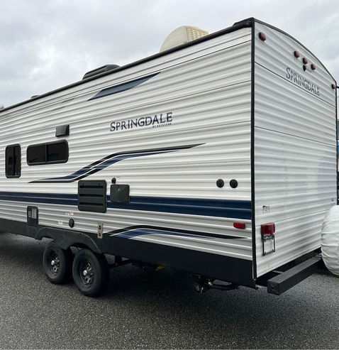 The 2022 Keystone Springdale 260TB is a 28-foot, 5,000-lb travel trailer in nearly new condition, with many features still in their original packaging. This well-equipped unit includes a fridge, freezer, microwave, stove, oven, roof AC, water heater, furnace, power awning, electric tongue jack, stabilizer jacks, and outdoor speakers, offering everything needed for a comfortable getaway. With double bunks, it sleeps up to 10, making it perfect for families or groups. Gas certified, impeccably clean, and fully operational, it’s road-ready and ideal for your next adventure.